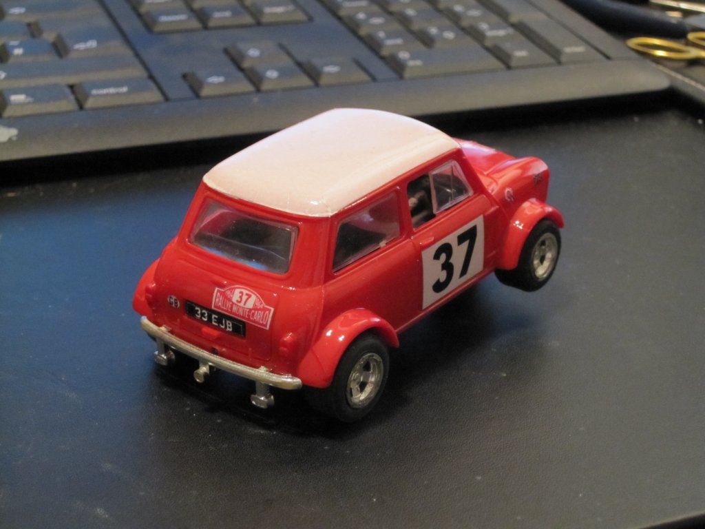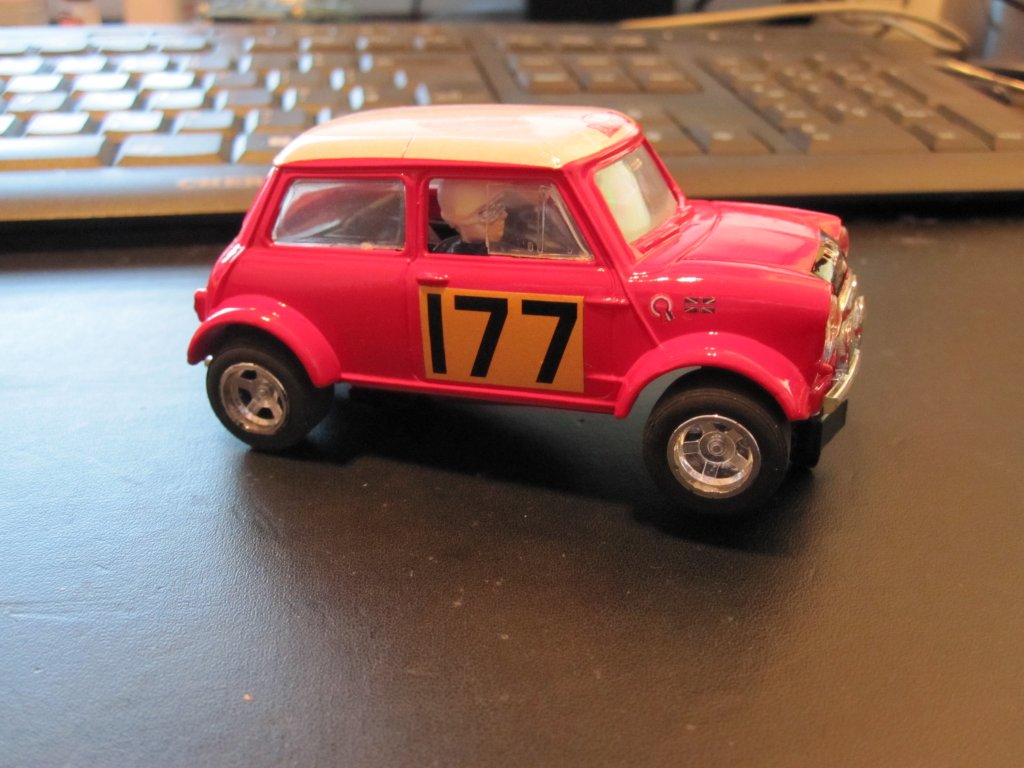 Model shown is a Scalextric Mini Cooper (c7)